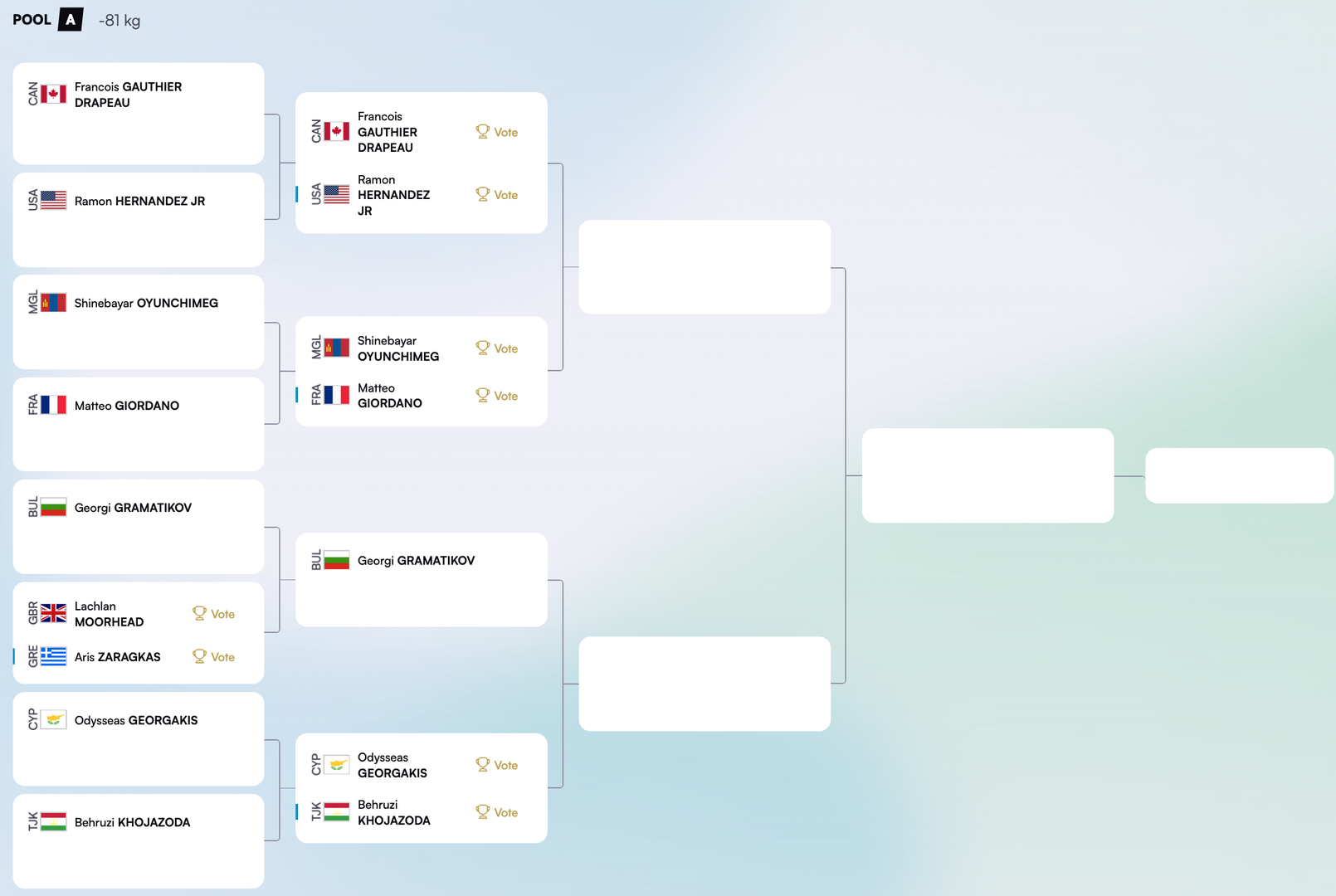 Тэгвэл өнөөдөр /11 сарын 29/ эрэгтэйчүүдийн -73, -81, эмэгтэйчүүдийн -63, -70кг жингүүдийн барилдаан явагдах ба монгол улсаа төлөөлөн гурав, АНУ-ын нэр өмнөөс нэг монгол бөх тус тус барилдах хуваарьтай байна.