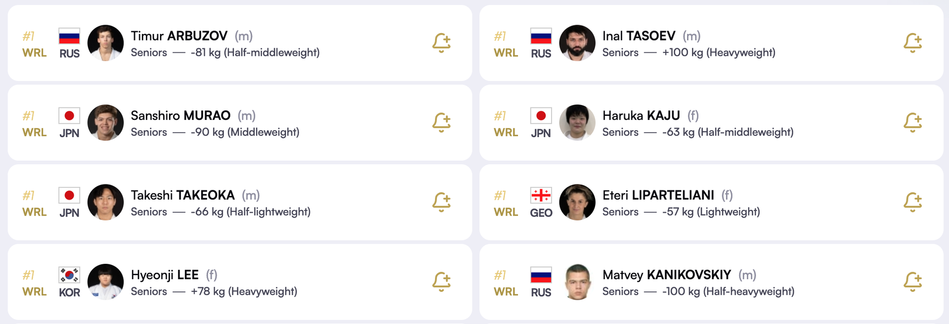 41 орны 306 шилдэг жүдоч оролцохоор мэдүүлгээ өгөөд байгаагийн дотор найман жингийн дэлхийн чансааг тэргүүлэгчид оролцохоор болоод байна.